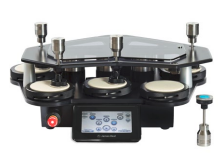 » Podem ser realizados testes de abrasão em até cinco amostras com o diâmetro de 38mm simultaneamente. Cada uma é preparada e colocada separadamente em um porta amostra.