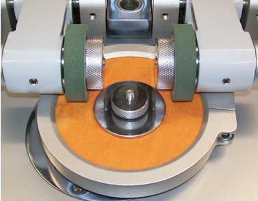 Uma ação específica de abrasão é produzida pelo contato da amostra de teste, que gira em um plano horizontal, contra dois rebolos de abrasão que giram sobre a mesma.