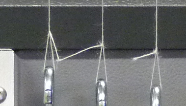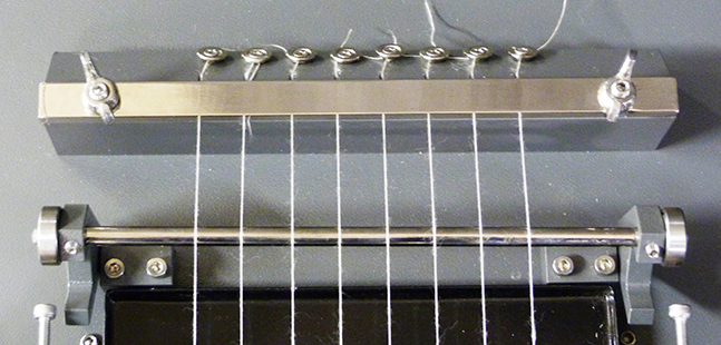 Os fios são presos em suportes individuais. Um cilindro com movimento oscilante posicionado sob os fios é movimentado. Os fios são friccionados a uma pressão por uma lixa.