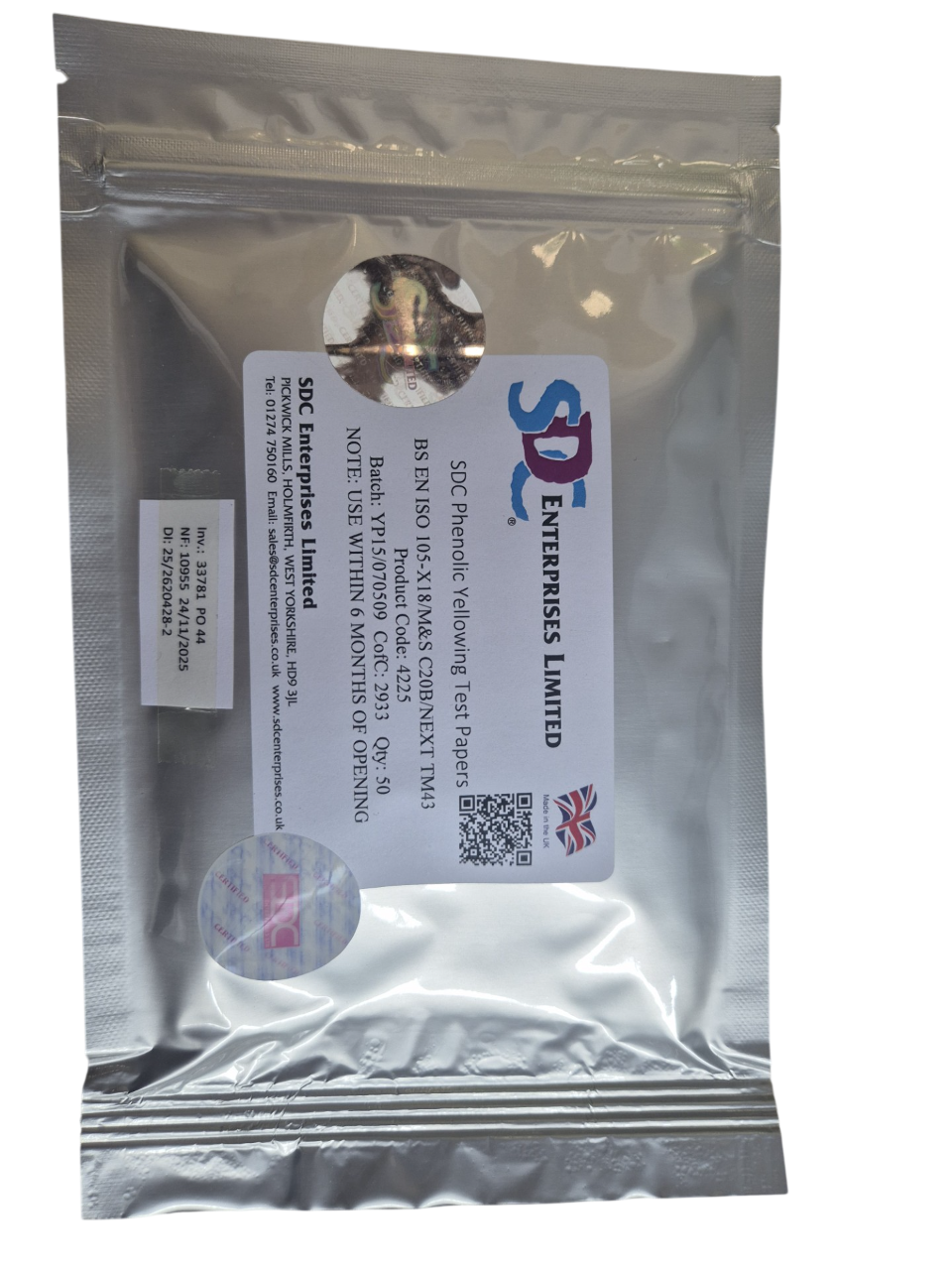 O ensaio de amarelamento fenólico foi inicialmente desenvolvido pela Courtaulds e, posteriormente, adotado pela Mark & Spencer como Método C20B, voltado à avaliação do amarelamento evasivo/reversível.