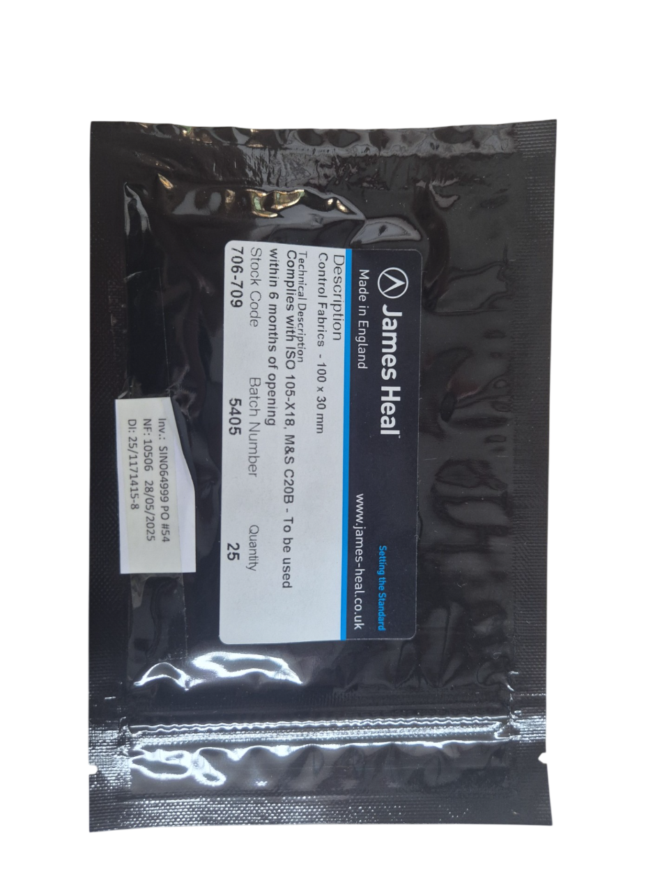 O tecido de controle é uma amostra têxtil padronizada e sensível aos vapores fenólicos, utilizada para validar a eficácia e a confiabilidade do ensaio. Sua função é confirmar se as condições do teste (papel impregnado, temperatura e tempo) estão adequadas, por meio de uma resposta de amarelamento esperada e previsível.