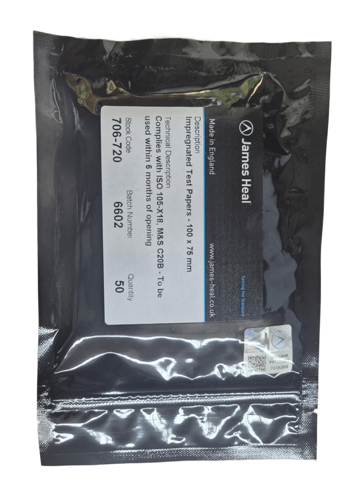 Esse ensaio é especialmente relevante para materiais sintéticos (ex.: acetato de celulose e poliéster), que podem sofrer alterações de cor ao longo do armazenamento ou transporte.