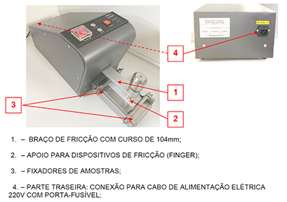 É um equipamento de bancada, automático, com controlador digital de ciclos, destinado a testes que avaliam a transferência de cor que ocorre nos tingimentos têxteis quando submetidos ao atrito contra tecidos, estofamentos e similares.