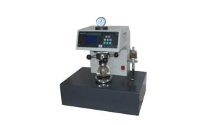Aparelho para determinar a resistência ao estouro de malhas, não-tecidos, papel, couro, entre outros. É dotado de uma base plana circular, com um diafragma de borracha e dispositivo de aperto manual.