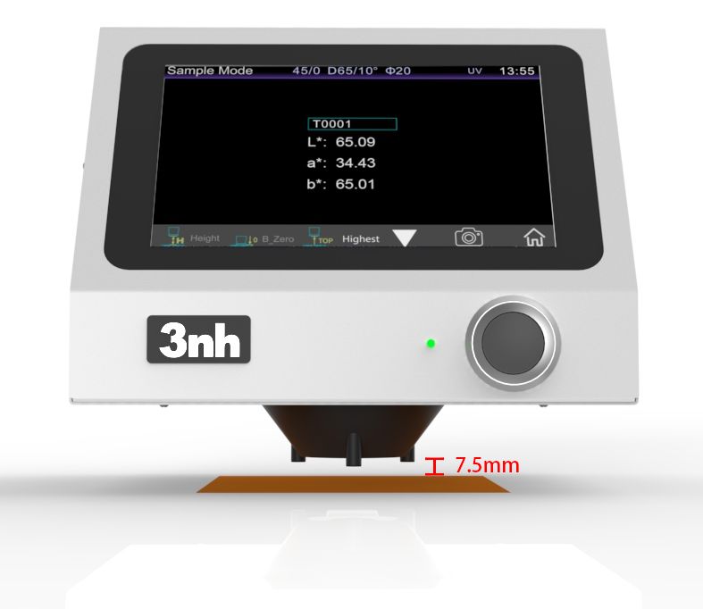 Utiliza geometria óptica 45° / 0° (iluminação circular a 45°, observação normal a 0°) para realizar medições colorimétricas sem contato com a amostra.