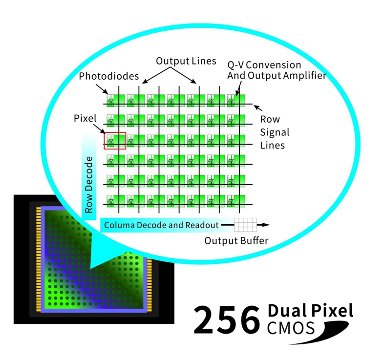 Emprega sensor CMOS de duplo array de 256 pixels para captar espectro com boa resolução.