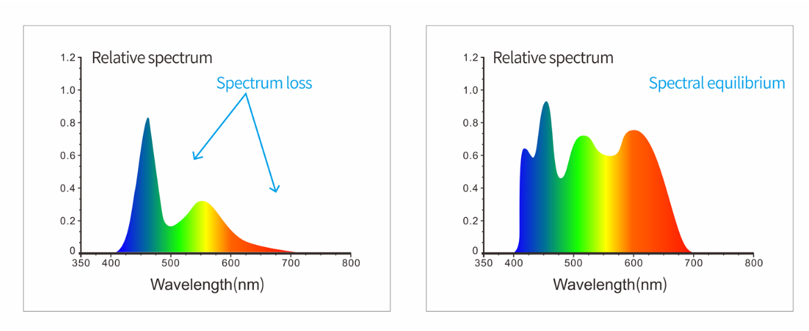 Fonte LED com UV e rede de difração côncava para alta precisão espectral.