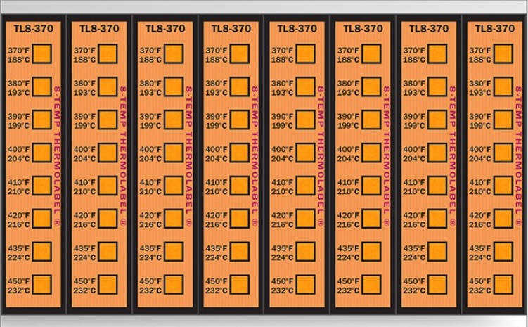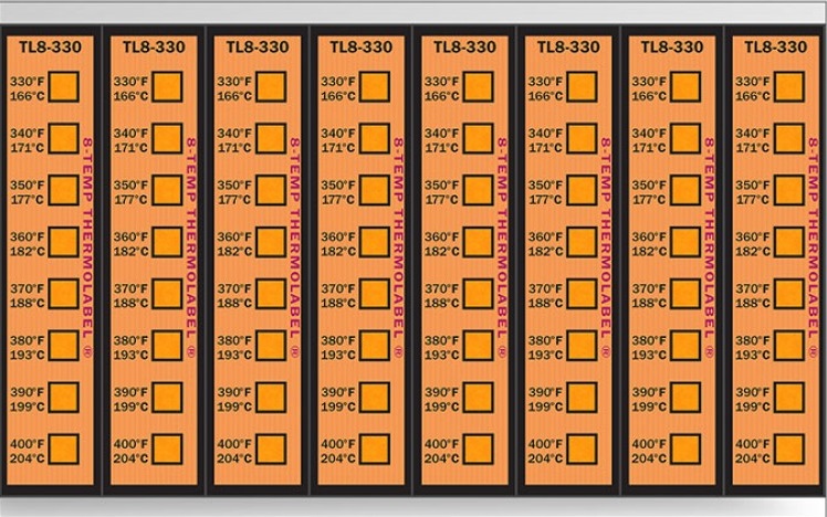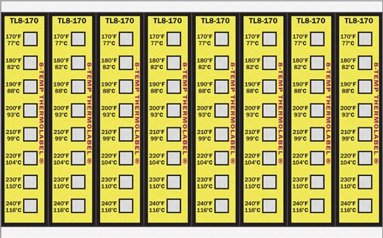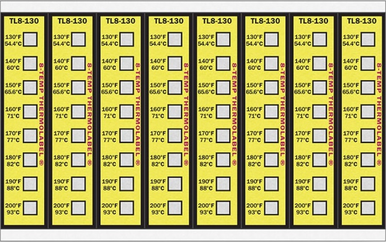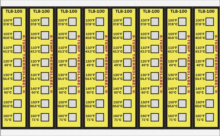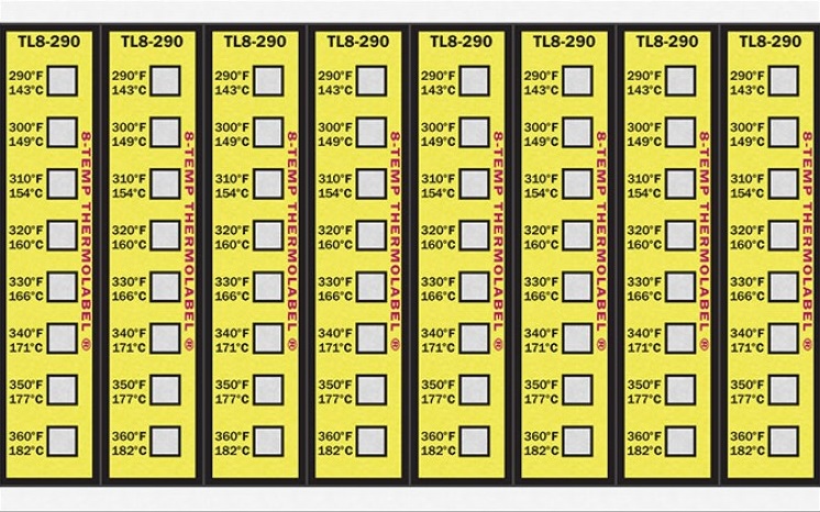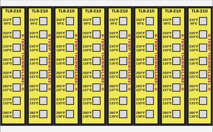 Ao atingir certas temperaturas, as fitas térmicas reagem em poucos segundos mudando de cor. As etiquetas de marcação múltipla são fabricadas numa escala que varia de 90 ºF a 500°F (32,2 ºC a 260 °C). Cada segmento da etiqueta corresponde a uma temperatura, que sofre uma nítida e permanente mudança de cor do branco ao preto, ao alcançar a temperatura marcada.