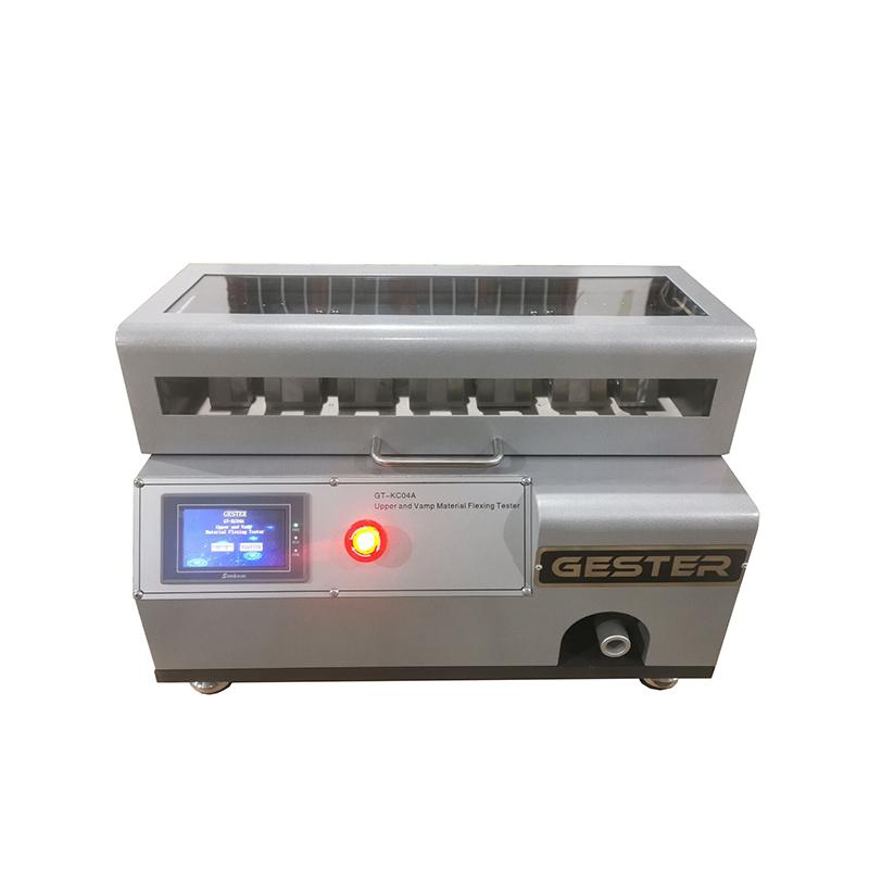 O GT‑KC04A Upper Material Flexing Tester, também conhecido como Rubber Upper Flexing Tester, simula a fadiga mecânica no cabedal de calçados. Compatível com normas como ISO, EN, SATRA, AS/NZS e GB, ele flexiona repetidamente amostras até 12 peças, medindo ciclos até o surgimento de trincas ou saliências (“salt spue”). É um equipamento essencial para garantir a durabilidade e qualidade dos materiais utilizados em partes visíveis e funcionais do calçado.