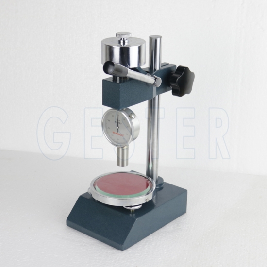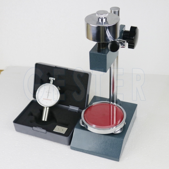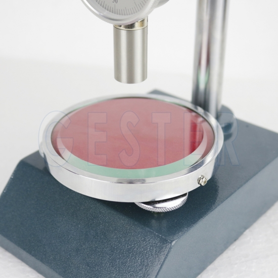 Dispositivo de apoio para medidores de dureza Shore A, usado para testar a dureza de materiais flexíveis como borracha, elastômeros, plásticos macios, etc., garantindo que a força seja aplicada de maneira consistente e perpendicular à amostra.