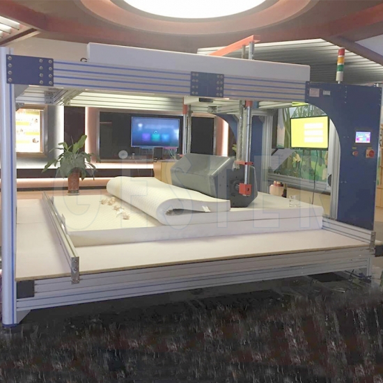 O GT-LA02 simula o movimento repetitivo de rolar sobre o colchão, aplicando pressão positiva, lateral e inversa. Isso permite avaliar a resistência e a durabilidade do colchão sob cargas repetitivas, imitando o uso contínuo por um longo período.
