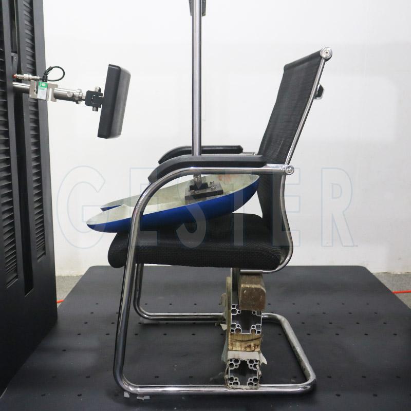 A GT-LB04-1 é projetada para testar a força e durabilidade de assentos e encostos de cadeiras, simulando o carregamento diário durante o uso. Ela realiza testes estáticos e de durabilidade em pontos específicos da cadeira, como assento, encosto e borda frontal, para avaliar sua resistência e desempenho ao longo do tempo.
