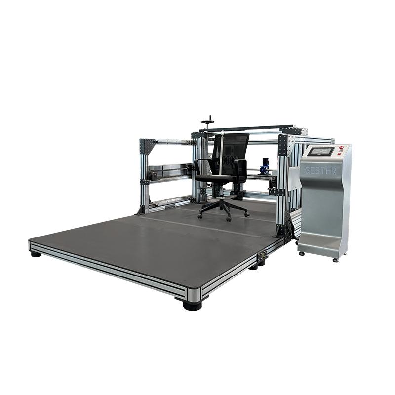 A Rolling Resistance Testing Machine GT-LB10 da Gester é projetada para avaliar a resistência ao rolamento de cadeiras com rodízios. Este equipamento simula o movimento horizontal de uma cadeira não carregada, aplicando uma força constante para medir a resistência ao rolamento.