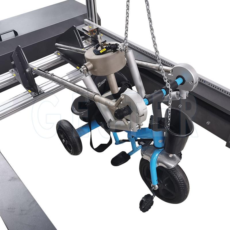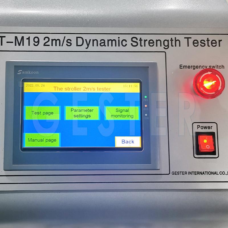 O Dynamic Strength Tester & 2 m/s Tester GT-M19 da Gester é um equipamento projetado para avaliar a resistência dinâmica de brinquedos com rodas. Ele simula choques contra um degrau rígido a uma velocidade controlada de 2 m/s, verificando se o brinquedo suporta impactos sem falhas estruturais.