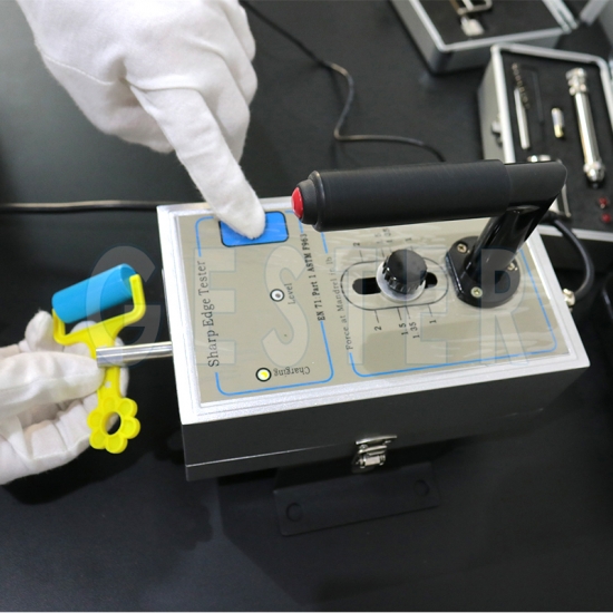 O Sharp Edge Tester GT-MB01 é um equipamento desenvolvido para avaliar a segurança de brinquedos e produtos infantis, verificando se bordas metálicas ou de vidro apresentam risco de corte ou lesão em crianças. Atende às principais normas internacionais (EN 71, ISO 8124, ASTM F963, entre outras) e utiliza um mandril de aço endurecido com fita sensível à pressão para detectar potenciais riscos.