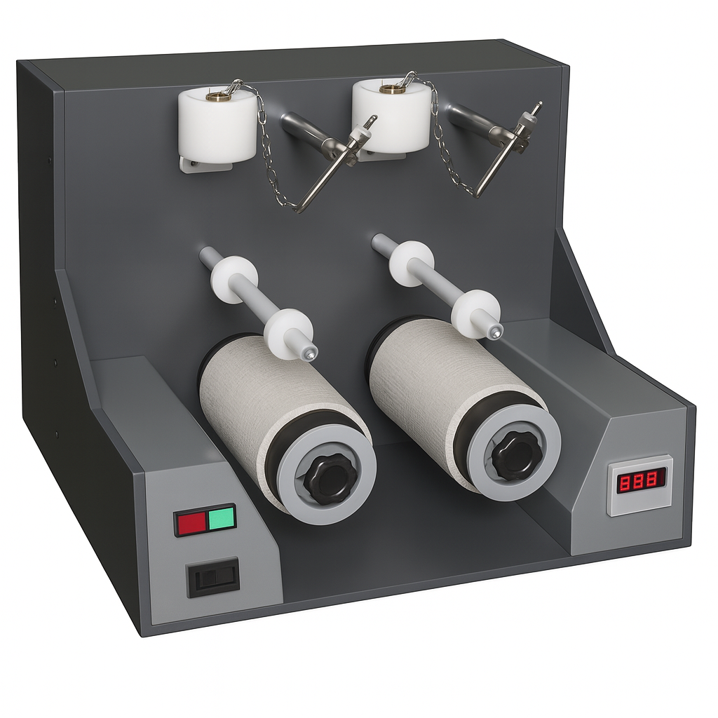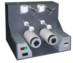 São quatro cilindros de alumínio cobertos por borracha, movimentados a uma velocidade constante por um motor elétrico. Os cilindros ainda são cobertos por uma manga de feltro que atua como proteção para as amostras durante o teste.