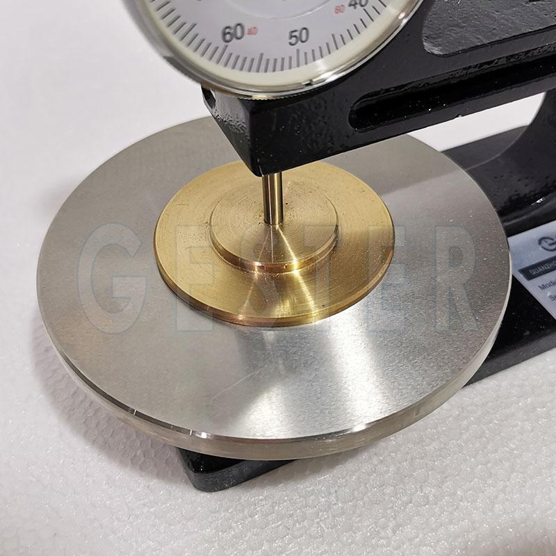 A medida da espessura destes não-tecidos ocorre entre uma placa de base e um sensor de medição de plástico que exerce uma pressão predeterminada sobre a amostra posicionada entre duas placas. O sensor está de acordo com a norma ISO 9073-2.