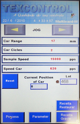 O controle de limitação de curso para ambos os lados do carro-guia via software, permite total comando das larguras de deposição dos fios na cartela e do intervalo entre as cores.