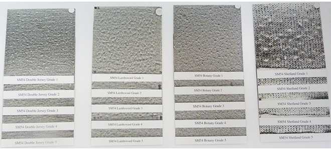 O SM 54 é constituído por uma série de padrões fotográficos para avaliação dos resultados em malhas. Os padrões são constituídos por 4 séries de 5 fotos graduadas numericamente de 1 a 5 contendo em cada foto exemplos de testes mostrando como se distribuem os Pilling e o Fuzzing nas amostras.