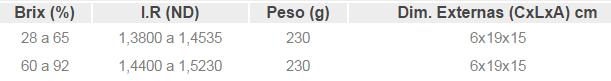 Permitem medições rápidas do conteúdo de açúcar em sucos, concentrados de frutas, refrigerantes comuns e diet, geléias, xaropes, café, drinks, óleos de corte, líquidos anticongelantes e fluidos