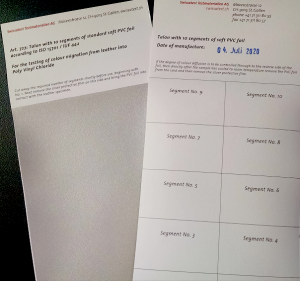 Folha de PVC maleável utilizada para determinar a resistência à migração contra PVC maleável. Fabricada de acordo com as normas:
