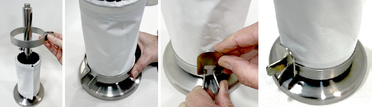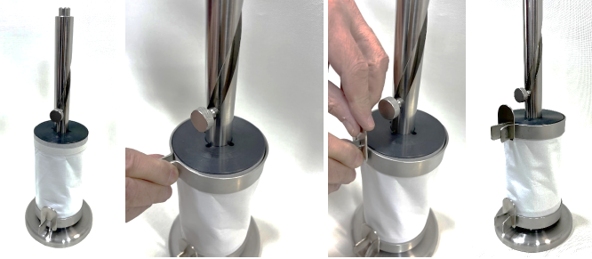 A precisão da coluna em espiral garante a uniformidade da amostra testada. O tecido é colocado sob teste em um dispositivo de carga durante um período pré-determinado, utilizando-se um peso apropriado ao método de teste.